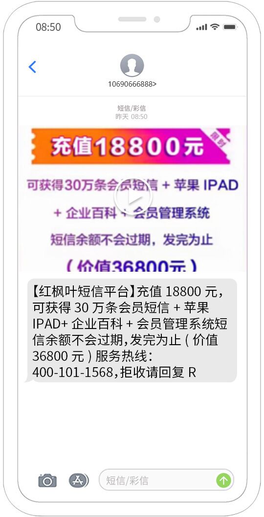 國(guó)家高新技術(shù)企業(yè),中國(guó)廣告協(xié)會(huì)會(huì)員,工信部頒發(fā)了SP證單位紅楓葉傳媒,購(gòu)買短信平臺(tái)均可簽訂合同保證質(zhì)量,不滿意可隨時(shí)退款
